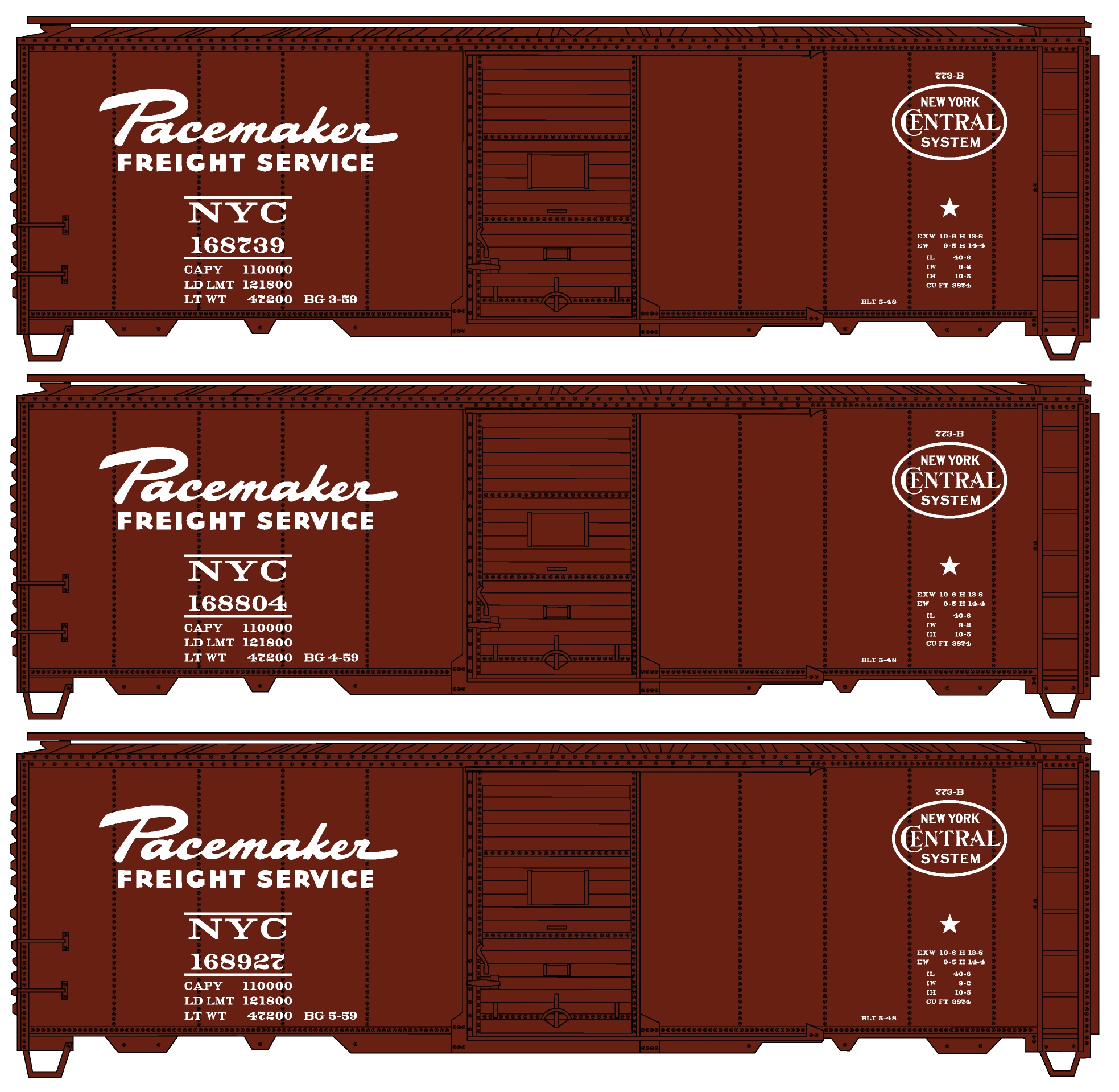 New York Central "Pacemaker" 40' Steel Boxcar 3-Car Set |