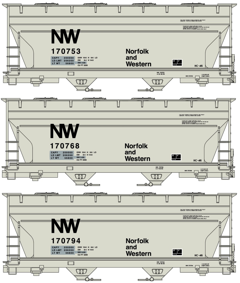 Norfolk & Western 2-Bay ACF Covered Hoppers Class HC-46 3 Road Numbers | Not an Accurail release. Available exclusively from Cincinnati Division 7 NMRA | 1/21/2025 |