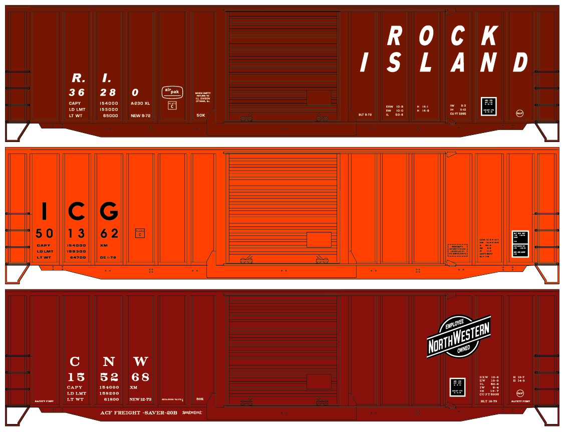 Midwest Railroad 50' Exterior Post Steel Boxcar 3-Car Set Illinois Central Gulf, Chicago & North Western, Rock Island |